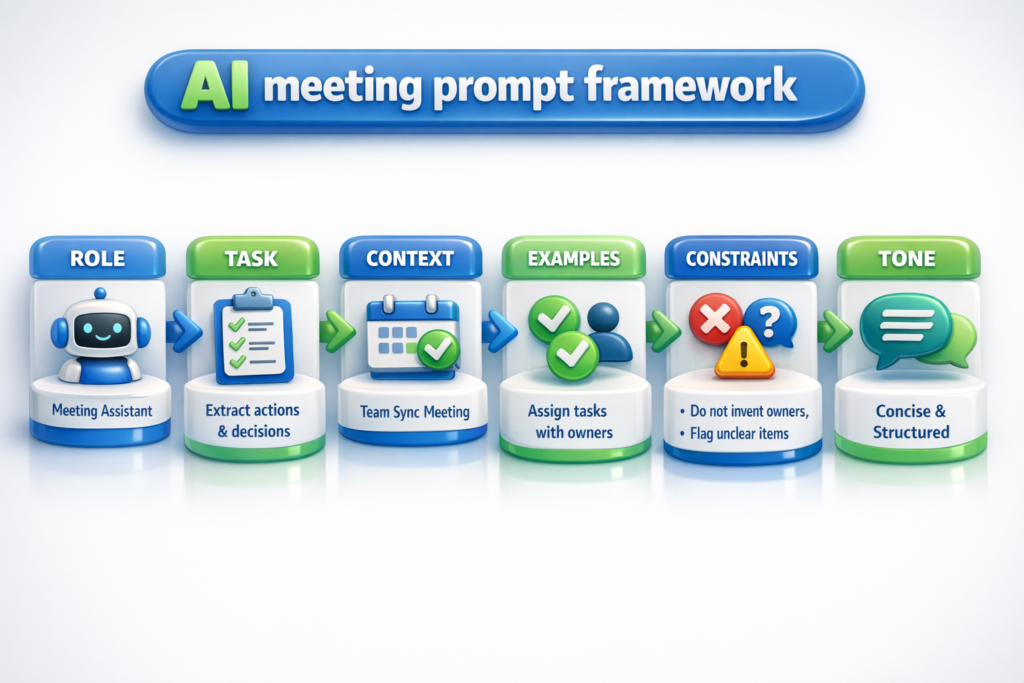| Asking for “meeting notes” only | Produces passive summaries with no action | Ask for “decisions, tasks, owners, deadlines” explicitly |